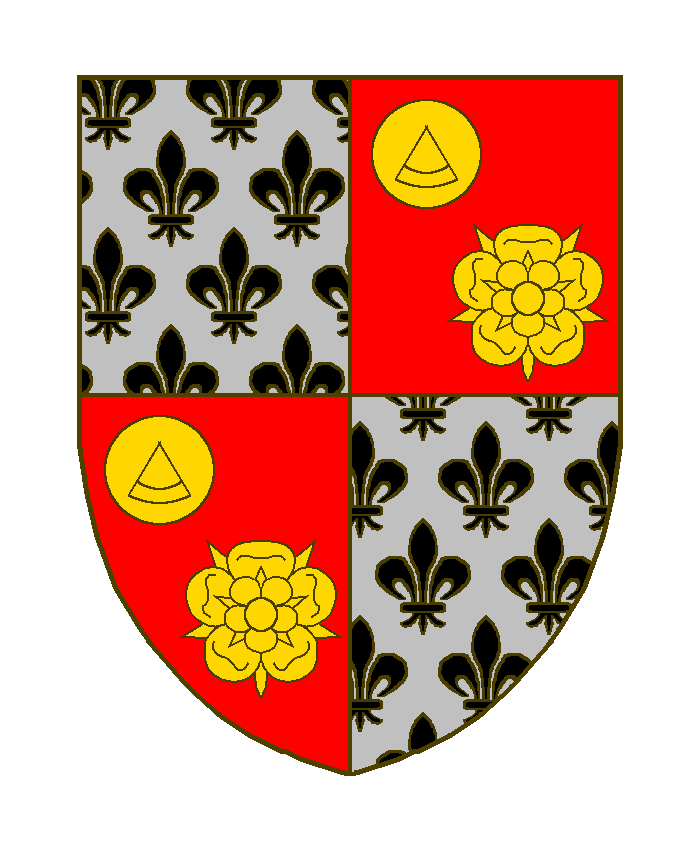 Blanchard Sizes: 150 × 150 / 247 × 300 / 700 × 850 de Blanchard Armes: Écartelé: aux 1 et 4 d’argent semé de fleurs de lis de sable, aux 2 et 3 de gueules à deux meubles en bande d’or, le premier ?, (cf. dessin), le deuxième une rose. Sources du Dr. Loutsch: (B.). Famille figurant dans les quartiers du Bouylle. Zitiert nach (Quelle): A.L. Seite 239