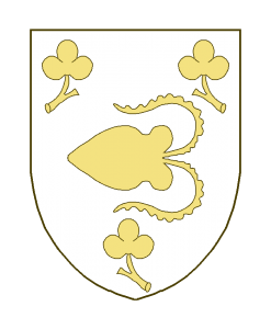 Une seiche posée en fasce, accompagnée de trois trèfles, chacun issant d’une petit branche.