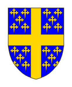 D’azur à la croix d’or, accompagnée de 20 croisettes recroisettées, au pied fiché du même.