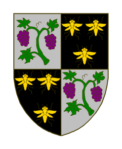 Écartelé: aux I et IV d’argent à une branche de vigne garnie de feuilles de sinople et de grappes de pourpre, aux II et III de sable à trois abeilles d’or.