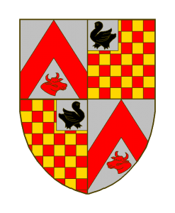 Écartelé: aux I et IV de Breisgen, (sans la croisette [D’argent au chevron de gueules, accompagné en pointe d’une tête de boeuf posée de profil de gueules.] ) , la tête de boeuf contournée au I, aux II et III van der Aa, qui est échiqueté d’or et de gueules, au franc-canton d’argent chargé d’une merlette de sable, celui du III étant un franc-canton sénestre, la merlette contournée.
