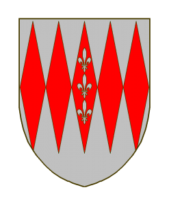 D’argent à 5 fusées acollées de gueules, mises en fasce, trois fleurs de lis d’argent en pal, chargeant la fusée du milieu.