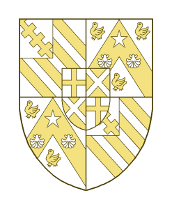 Écartelé: aux I et IV à 4 bandes, au franc-quartier chargé d’une bande bretessée, aux II et III un chevron chargé de deux coquilles et d’une étoile en chef, et accompagné de trois merlettes. Sur le tout contre- écartelé à une croix et au sautoir.Sources du Dr. Loutsch: