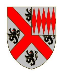 D’argent au sautoir de gueules cantonné de quatre lions de sable, lampassés de gueules, au franc-quartier sénestre d’argent à cinq fusées de gueules mises en fasce.
