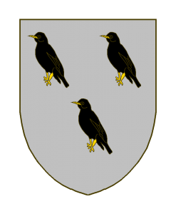 D’argent à trois étourneaux de sable, aux jambes, pieds et becs d’or.