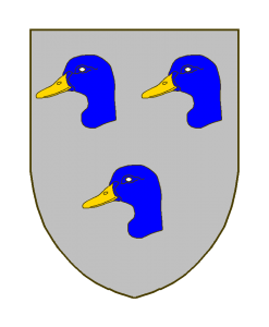 ‘argent à trois têtes et cols de canard d’azur, becquées d’or.