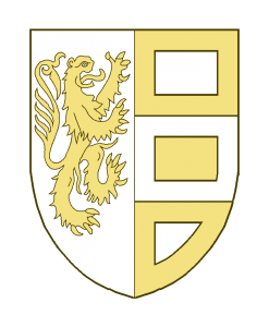 Parti au I un lion contourné, au II tiercé en fasce, chacune des trois partitions à la bordure.