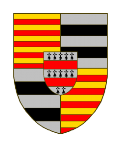 Écartelé: aux I et IV burelé d’or et de gueules de 10 pièces, aux II et III d’argent à deux fasces de sable, et sur le tout d’hermine à deux fasces de gueules.