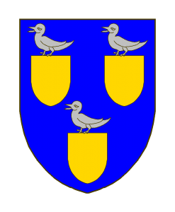 D’azur à trois écussons d’or, surmontés chacun d’une tourterelle d’argent.