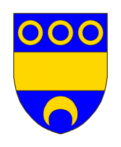 D’azur à la fasce d’or, accompagnée en chef de trois annelets rangés du même, en pointe d’un croissant versé aussi d’or.