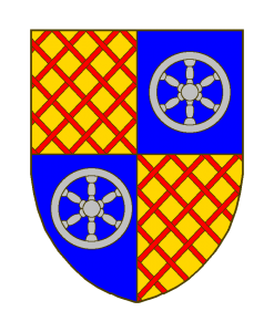 écartelé aux I et IV d’or fretté de gueules, aux II et III d’azur à la roue d’argent.