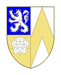 Parti, au I coupé d’azur au lion couronné, et de … à la rose; au II an chevron.