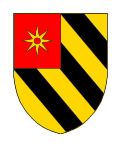 Dollendorf – variante Sizes: 150 × 150 / 247 × 300 / 700 × 850 de Dollendorf - variante Armes: D’or à trois bandes de sable, au franc-canton de gueules à une molette d’or. Cimier: Deux proboscides adossées, l’une d’or, l’autre de sable. Sources du Dr. Loutsch: (B./N.) Zitiert nach (Quelle): A.L. Seite 325