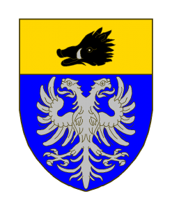 D’azur à l’aigle éployée d’argent, au chef d’or chargé d’une hure de sanglier de sable, défendue d’argent.