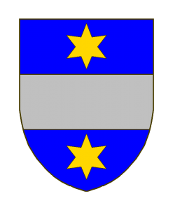 D’azur à la fasce d’argent, accompagnée de deux étoiles à six rais d’or, une en chef, l’autre en pointe.