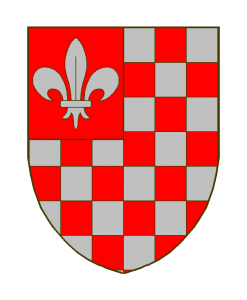 Echiquetéde gueules et d’argent, un franc-quartier de gueules à une fleur de lis d’argent.