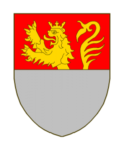 Coupé, de gueules au lion d’or naissant (parfois couronné), et d’argent.
