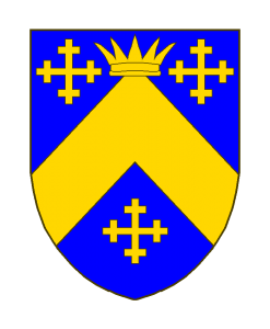 D’azur au chevron abaissé d’or, sommé d’une couronne à l’antique du même, et accompagnée de trois croisettes recroisettées, également d’or.