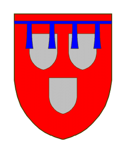 De gueules à trois écussons d’argent, au lambel à quatre ou cinq pendants d’azur, brochant en chef.