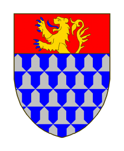 De vair au chef de gueules chargé d’un lion issant d’or, armé et lampassé d’azur.