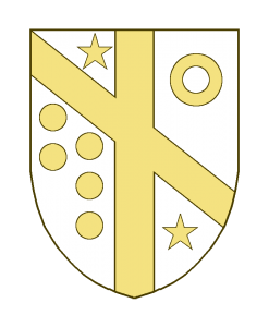 D’azur à la croix alésée d’argent, cantonnée de quatre étoiles à six rais du même.