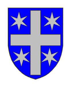 D’azur à la croix alésée d’argent, cantonnée de quatre étoiles à six rais du même.