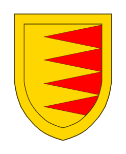 D’or emmanché de quatre pièces de gueules, mouvant duflanc sénestre de écu, à la bordure d’or.