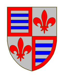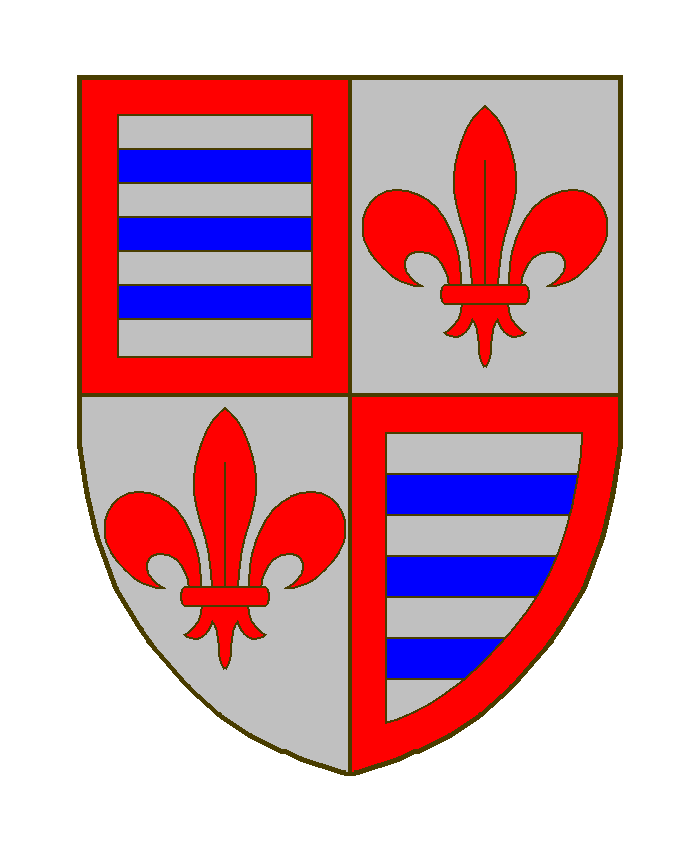 Flodorf, ou Flodorp Sizes: 150 × 150 / 247 × 300 / 700 × 850 de Flodorf, ou Flodorp Armes: Écartelé: aux I et IV d’argent à trois fasces d’azur, à la bordure de gueules, aux II et III d’argent à la fleur de lis de gueules. Sources du Dr. Loutsch: (N./R./O.H., 1915, P. 14/Gourdet). Zitiert nach (Quelle): A.L. Seite 364