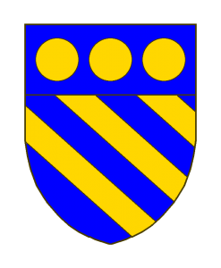 D’azur à trois bandes d’or, au chef d’azur à trois besants d’or.