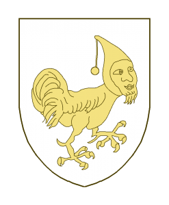 Un coq à tête humaine barbue, coiffée d’un bonnet de fou.