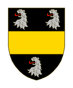 De sable à la fasce d’or accompagnée de trois têtes de lion arrachées d’argent, lampassés de gueules.