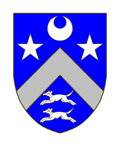 D’azur au chevron abaissé d’argent surmonté d’un croissant, et accompagné en chef de deux étoiles, en pointe de deux lévriers courants, l’un sur l’autre.
