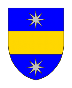 D’azur à la fasce d’or, accompagnée de deux étoiles à huit rais d’argent, une en chef, une en pointe.