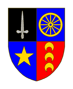 Écartelé: au I de sable à l’épée d’argent, au II d’azur à la roue d’or, au III d’azur à l’étoile d’or, au IV de gueules à trois croissants d’or.