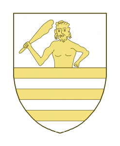 Coupé, en chef un homme sauvage nu issant, brandissant sa massue, en pointe fascé.