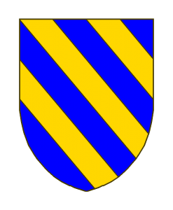 A dextre un lévrier au naturel, colleté de gueules, bordé et bouclé d’or à sénestre un lion au naturel.