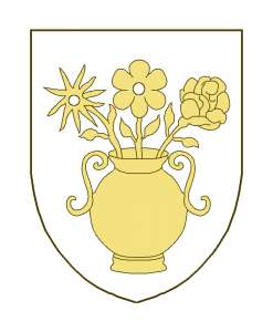 Un vase ventru et ansé à trois fleurs feuillées issant, la première à pétales pointus, la deuxième genre sextefeuille, la troisième une rose au naturel.