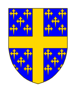 D’azur à la croix d’or cantonnée de vingt croisettes recroisettées au pied fiché du même.