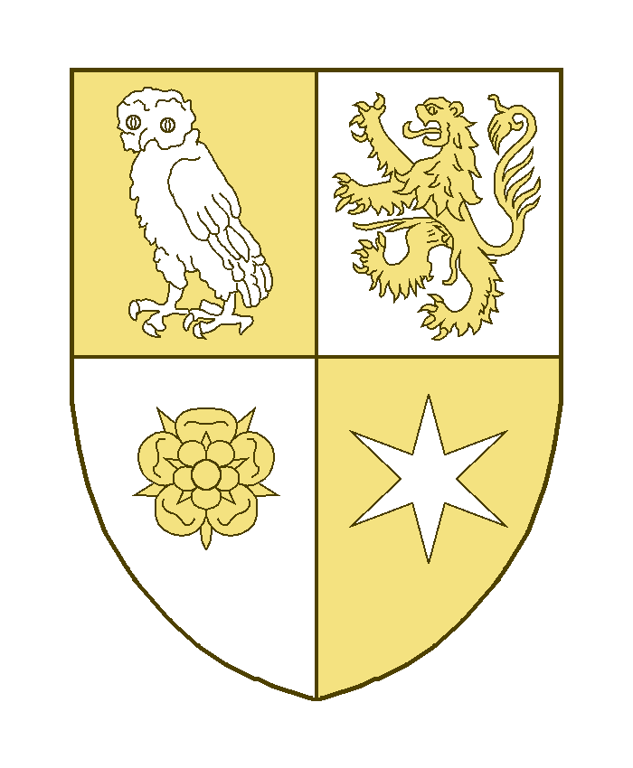 Écartelé: au I un hibou, au II un lion, au III une rose,au IV une étoile à six rais.