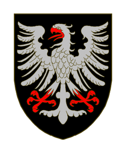 De sable à l’aigle d’argent, becquée et membrée de gueules.