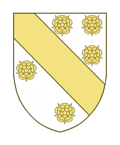 Une bande accompagnée de cinq roses ou quintefeuilles, trois en chef, deux en pointe.