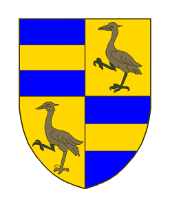 Écartelé: aux I et IV d’azur à la fasce d’or, aux II et III d’or à la grue au naturel.
