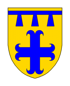 D’or à la croix ancrée d’azur et en chef un lambel à trois pendants d’azur.