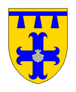 D’or à la croix ancrée d’azur chargé en coeur d’une coquille d’argent, et en chef un lambel à trois pendants d’azur.