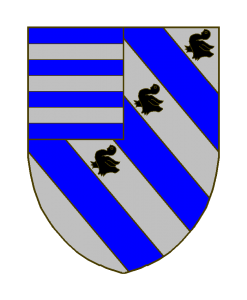 D’argent à trois bandes d’azur, chacune surmontée d’une merlette de sable posée dans le sens de la bande, le franc-quartier d’azur à trois fasces d’argent.