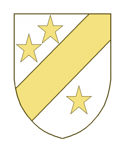 Une barre, accompagnée de trois étoiles, deux en chef, une en pointe.