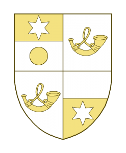 Écartelé: au I Coupé, en chef une étoile à six rais, en pointe un besant ou tourteau; au II et III un cor de chasse contourné ; au IV Coupé, en chef plain, en pointe une étoile à six rais.