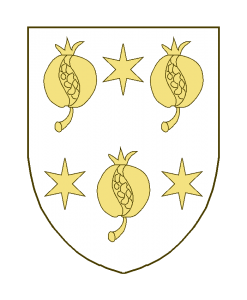 Trois grenades, les tiges en bas, accompagnées de trois étoiles mal ordonnées à six rais.