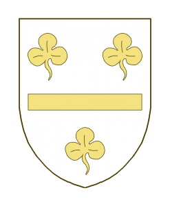 Un filet alésé en fasce, accompagné de trois trèfles.