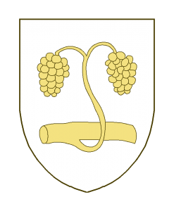 Une branche en fasce, détachant un rameau en pointe qui passe en pal devant la branche et se sépare en deux pour supporter deux grappes.